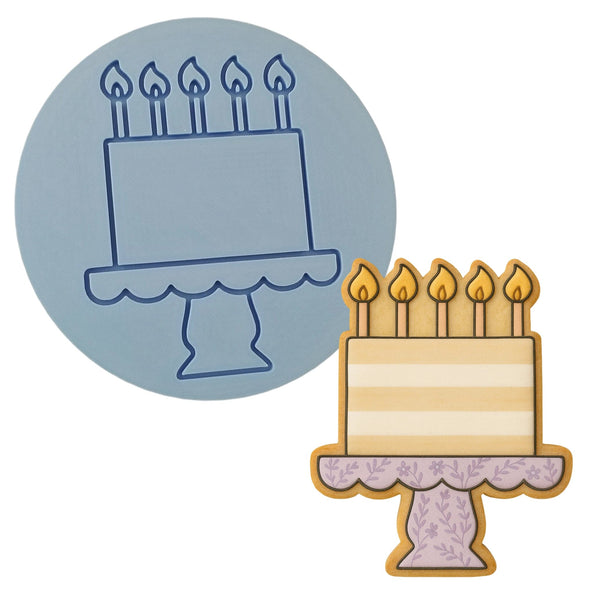 Birthday Cake on Platter Cookie Cutter | Stamp | Stencil - SHARP EDGES - FAST Shipping - Choose Your Own Size! #1