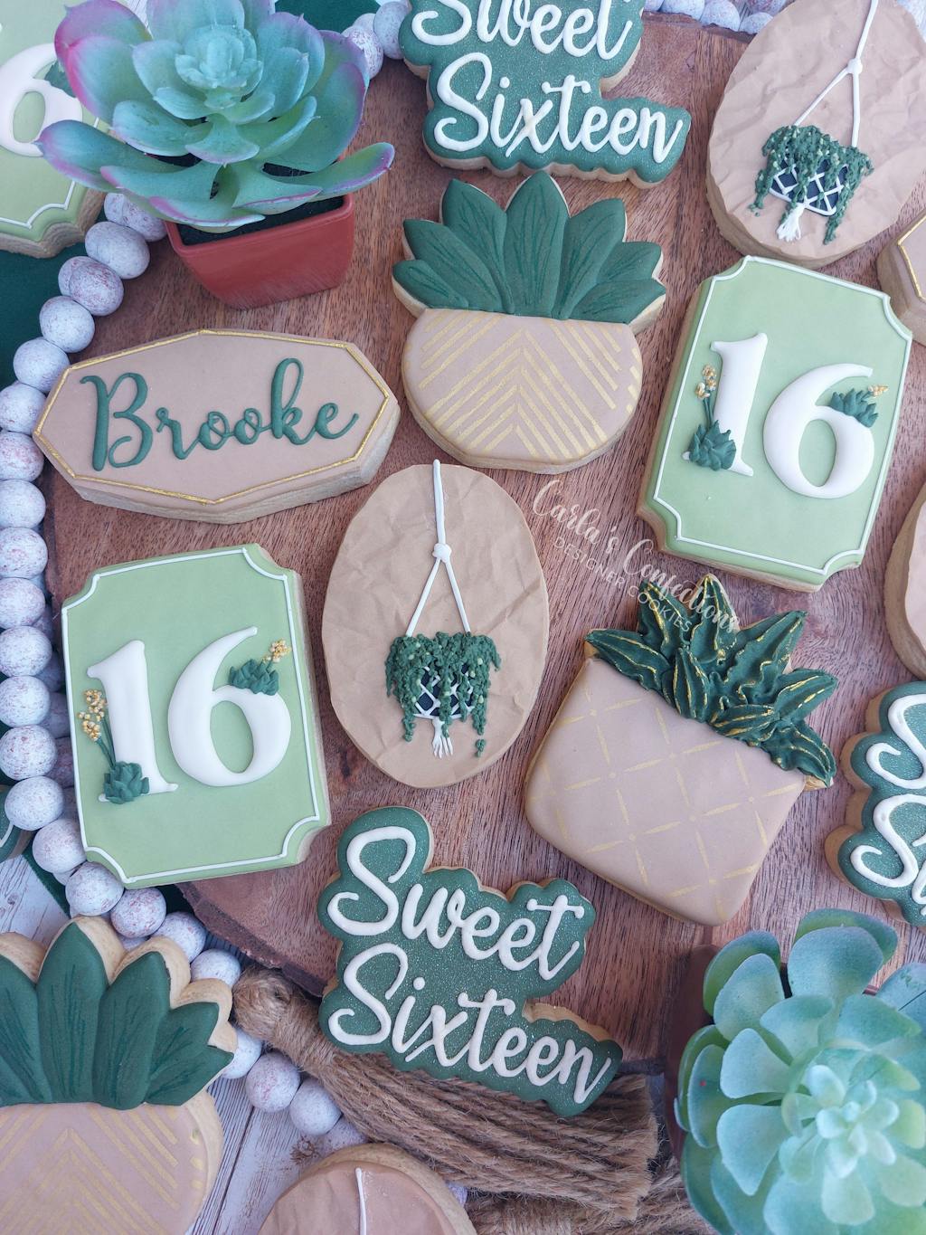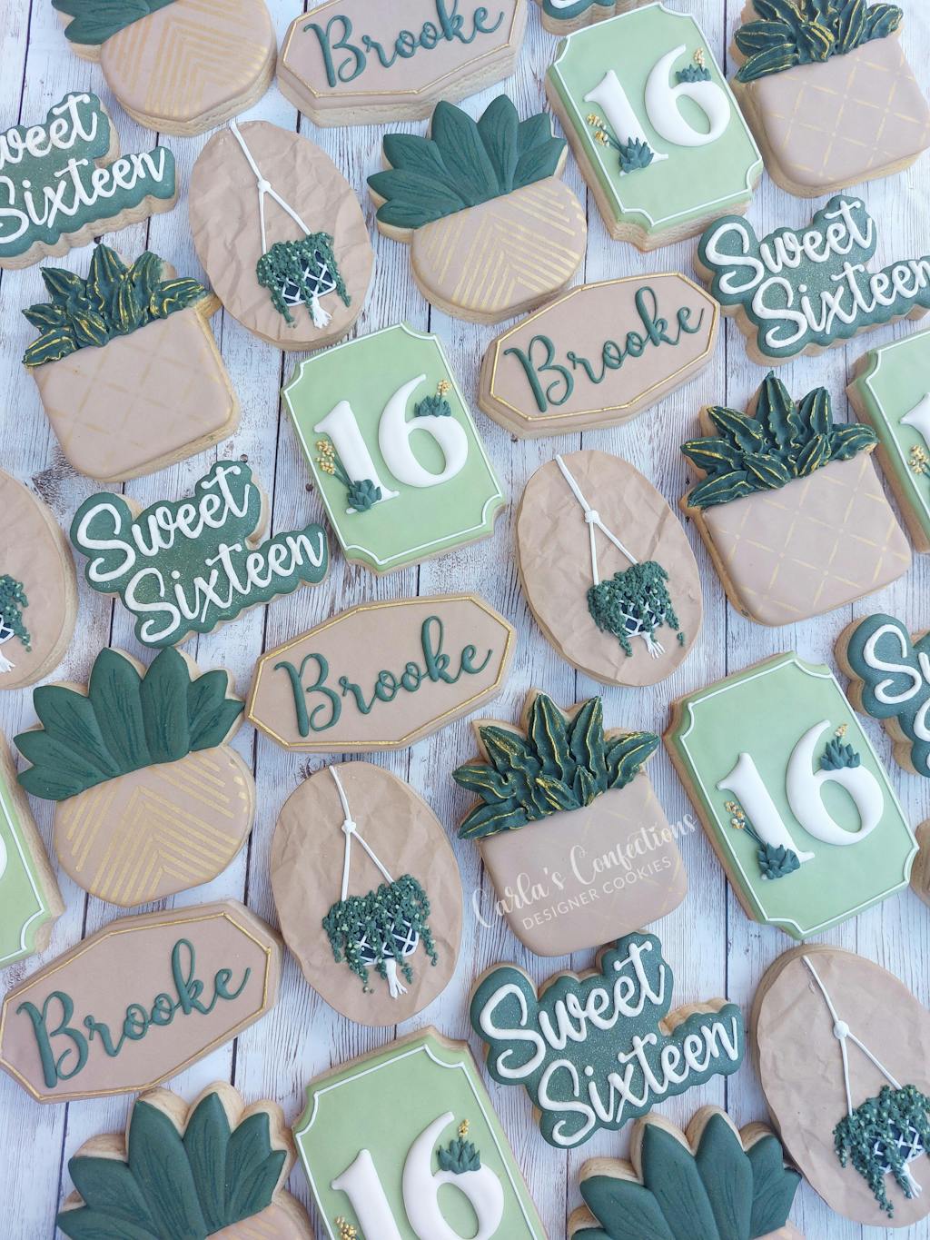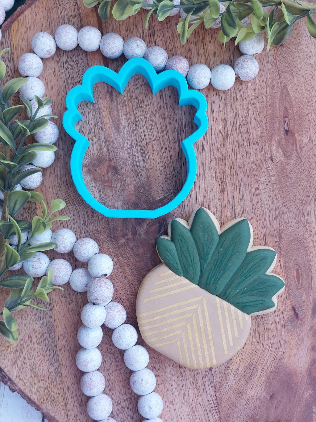 I was asked to do a set for a sweet 16 with a succulent and plants. I fell in love with the shape of this so I knew it would fit well. I ended up going with a flat leaf and gave it some dimension with an edible marker. A little gold airbrushing and I think it turned out fantastic. I would highly recommend these cutters. Very well made and sturdy! Cut right through the dough!